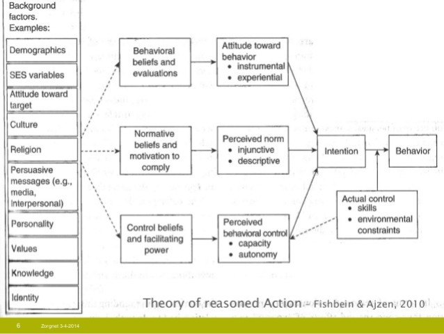 Pada tahun 2010 Martin Fishbein dan Icek Ajzen menerbitkan buku berjudul Predicting and Changing Behavior: The Reasoned Action Approach. Setelah melalui revisi berkali-kali teori yang mereka tawarkan mengambil bentuk seperti di bawah ini: